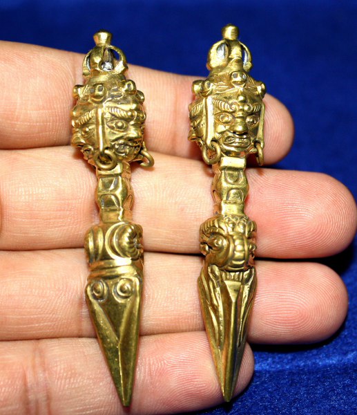 | Name | : | Kilaya 3 face Wrathfull Gold, size 6,5 cm, Tibetan Holy Weapon |