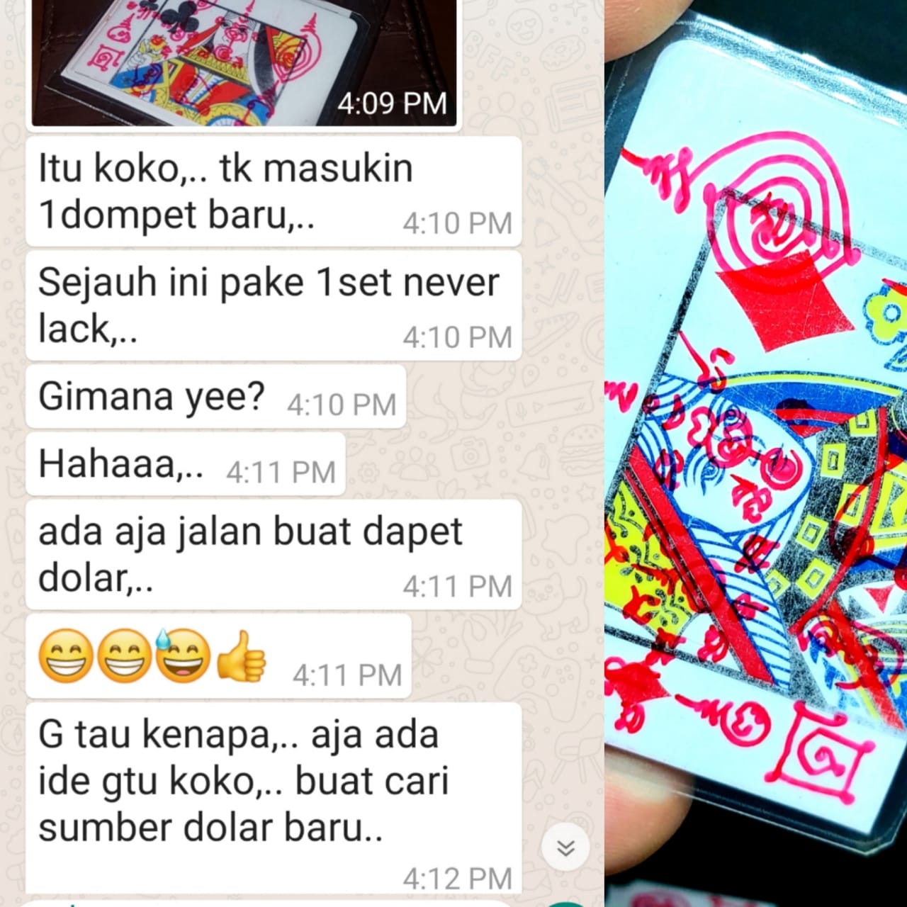 Terbuat dari kartu yang sudah digunakan untuk bermain judi sebelumnya. Phra Arjarn O membawa mereka untuk menulis banyak Yant dan sangat diberkati untuk mendukung pemilik dalam hal uang, kekayaan, keberuntungan, dan rejeki nomplok.